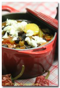 Gör så här:Putsa och skär köttet i stimlor. Skala och skär löken i klyftor. Skala och hacka vitlöken. Skala och skär morötterna i bitar. Strimla vitkålen. Fräs köttet i smör eller olja i stekgrytan, lyft ur när det fått lite färg och fräs löken och morötterna lätt. Lägg tillbaka köttet och tillsätt kålen, tomatkross, spiskummin och buljong + vatten. Låt nu grytan koka upp och småkoka i 10-15 minuter, tills grönsakerna och köttet är mjukt. Klipp tomaterna i bitar och låt dem koka med på slutet. Smaka av grytan med citron, honung och eventuellt mera salt. Klipp koriander och blanda ner strax före servering och varmhåll grytan. Servera med ris, potatis, couscous eller bröd.